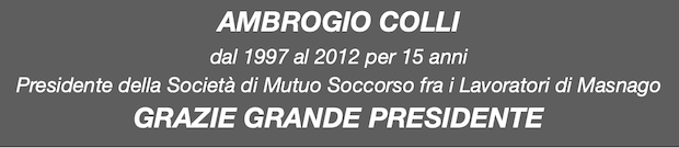 Grazie per quanto hai fatto disinteressatamente per il Circolo di Masnago e per la Masnago tutta ti saremo sempre riconoscenti.
